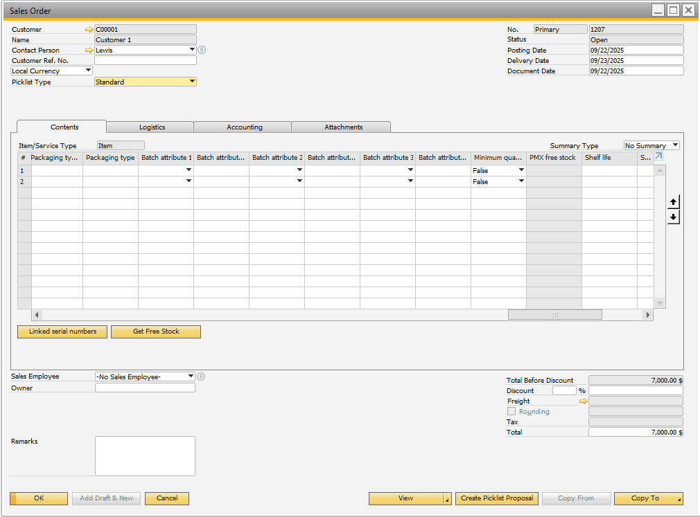 Some PMX buttons, such as Create Picklist Proposal, Select Stock, or Get Free Stock appear on SAP Business One documents. This documentation focuses on explaining these PMX-specific functions and their usage.