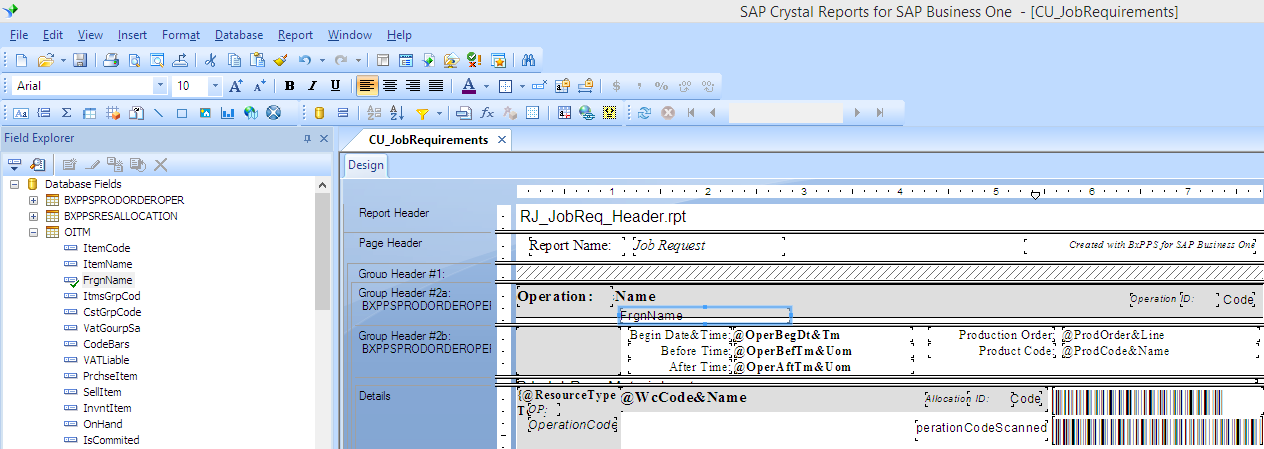 In our example we will include the foreign name of the operation on the Job Requirements report under the operation name.