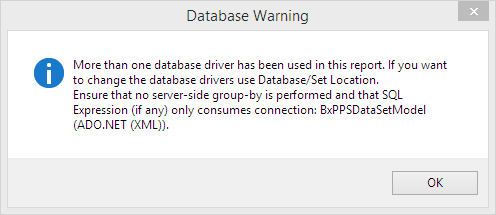 A database warning will pop up. Click on the ‘OK’ button to acknowledge the message.