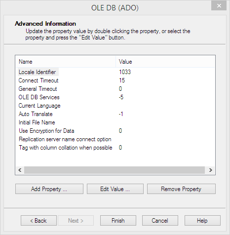 On the opening ‘Database Expert’ form open the ‘Create New Connection’ folder and click on the ‘OLE DB’ folder. On the OLE DB form chose ‘Microsoft OLE DB Provider for SQL Server’ as the Provider. Click on ‘Next’ to proceed.
