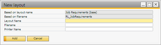Add the ‘Layout Name’ and the ‘Filename’ then click on the ‘Add’ button. The base layout will be copied to the new layout.