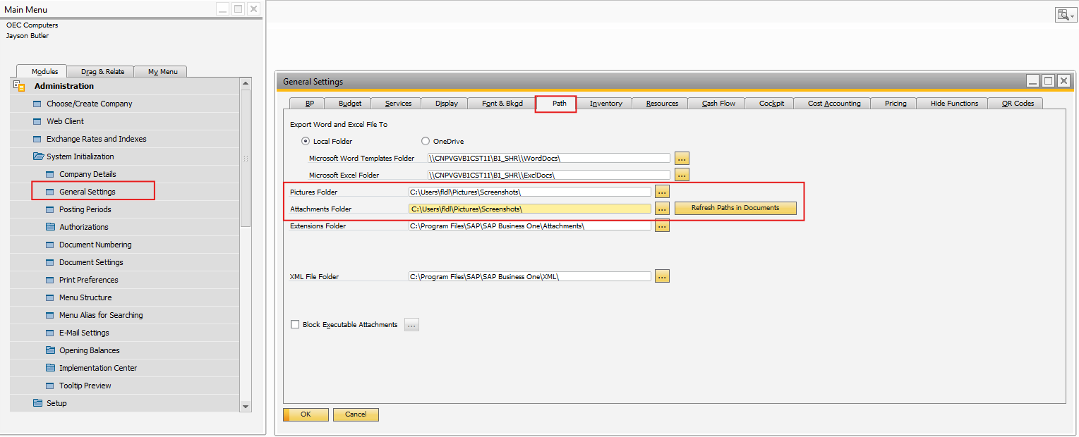 Once the document is posted, the physical file is saved under SAP General Settings → Path for Attachments. The file name is generated using the defined template, and Produmex Scan stores the final file path in its internal tables.