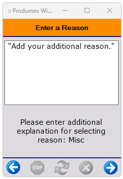 After the number of hours has been entered, the system asks whether to register downtime or not. Press the ‘Yes’ button to register downtime. Press the ‘No’ button to proceed without registering downtime.
