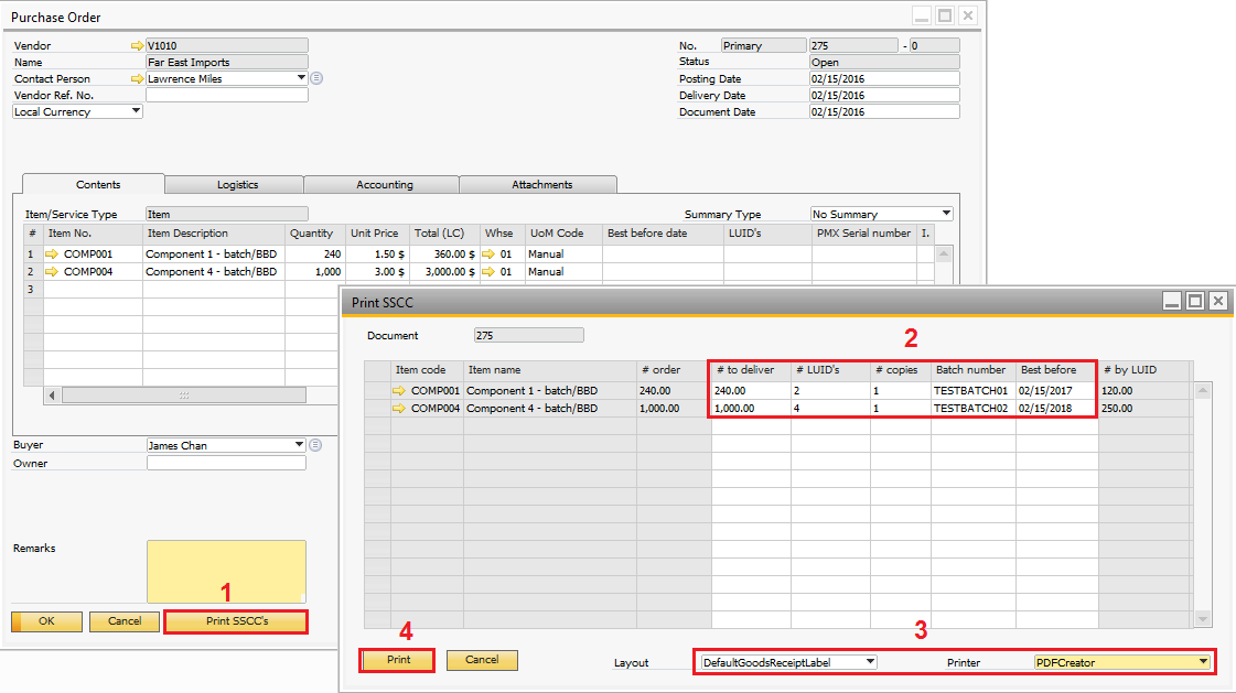 If an item has a batch number, a second batch number or BBD, the system can ask for batch attributes during reception and production.