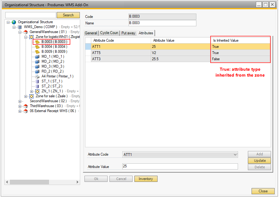 - Organizational Structure: Bin location settings