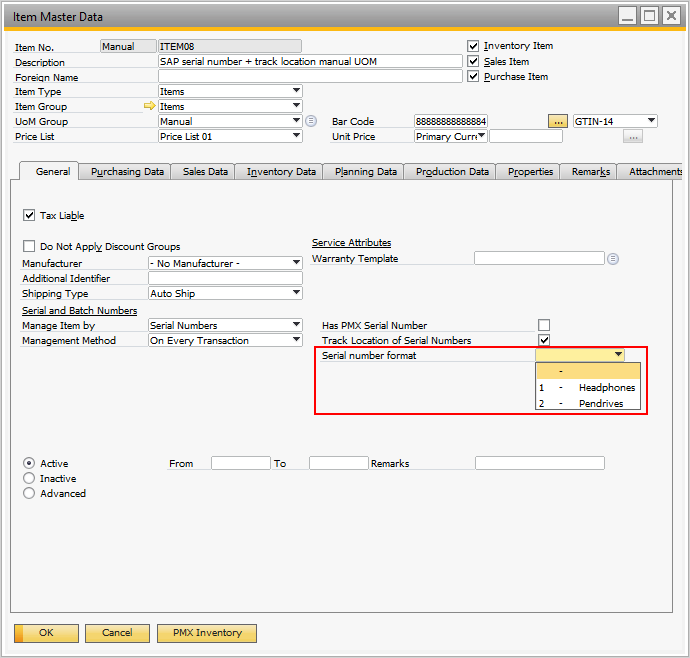 - 2.3.27. Produmex Item Serial Number Format (PMX_ISFT)