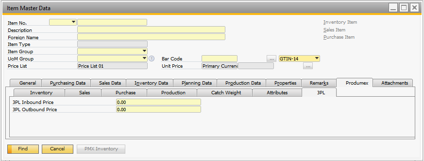- 1.4. Item Master Data: Produmex tab