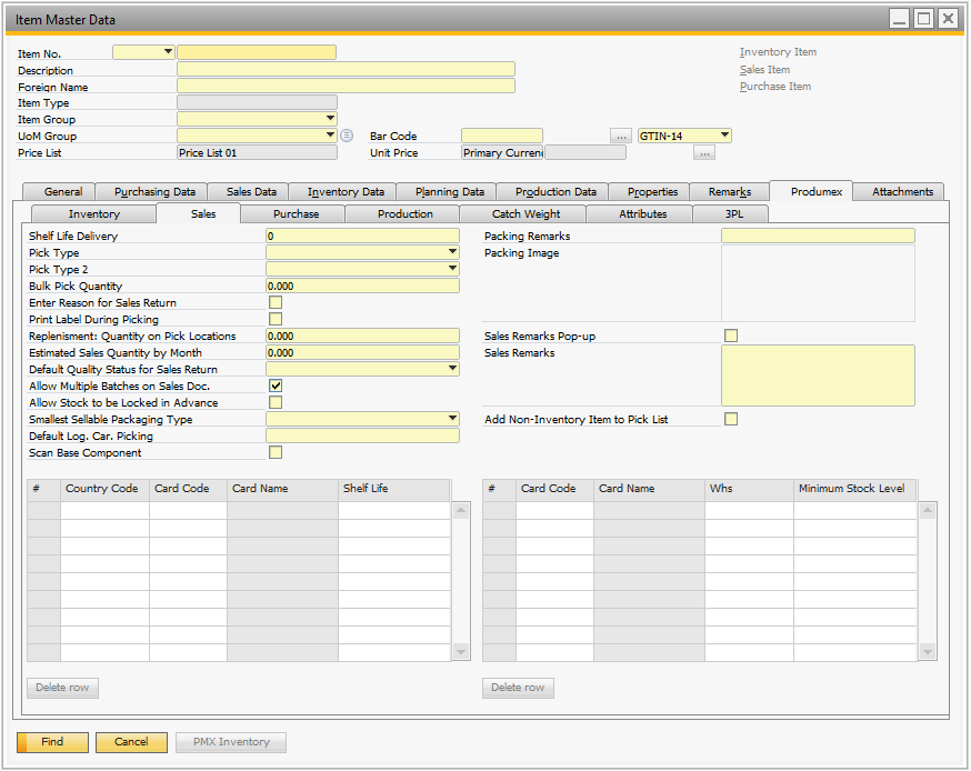 - 1.4. Item Master Data: Produmex tab